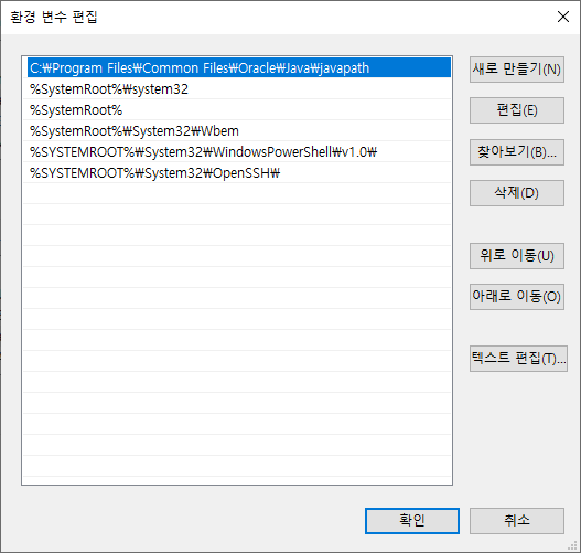 6. 확인 누르고 돌아와서 시스템변수-새로만들기